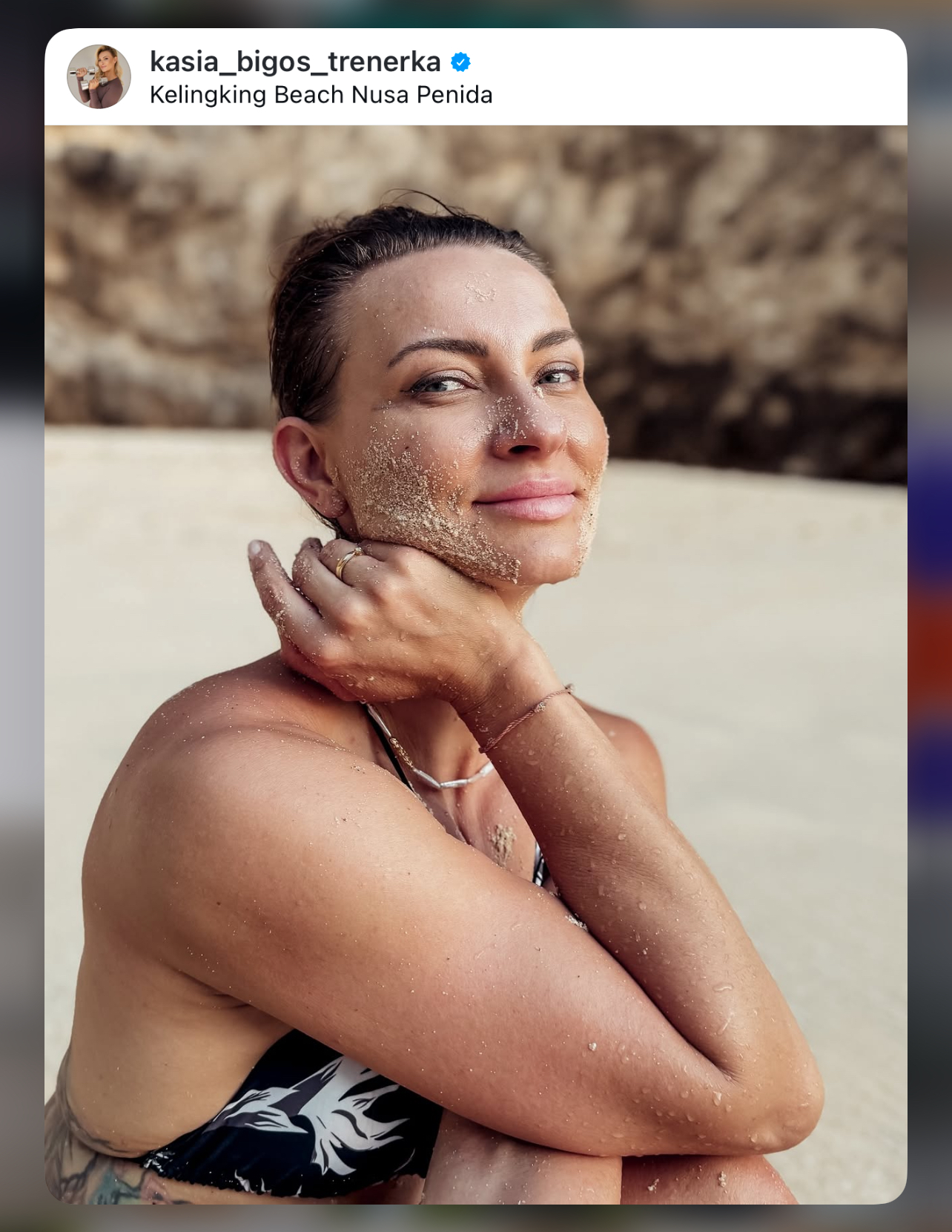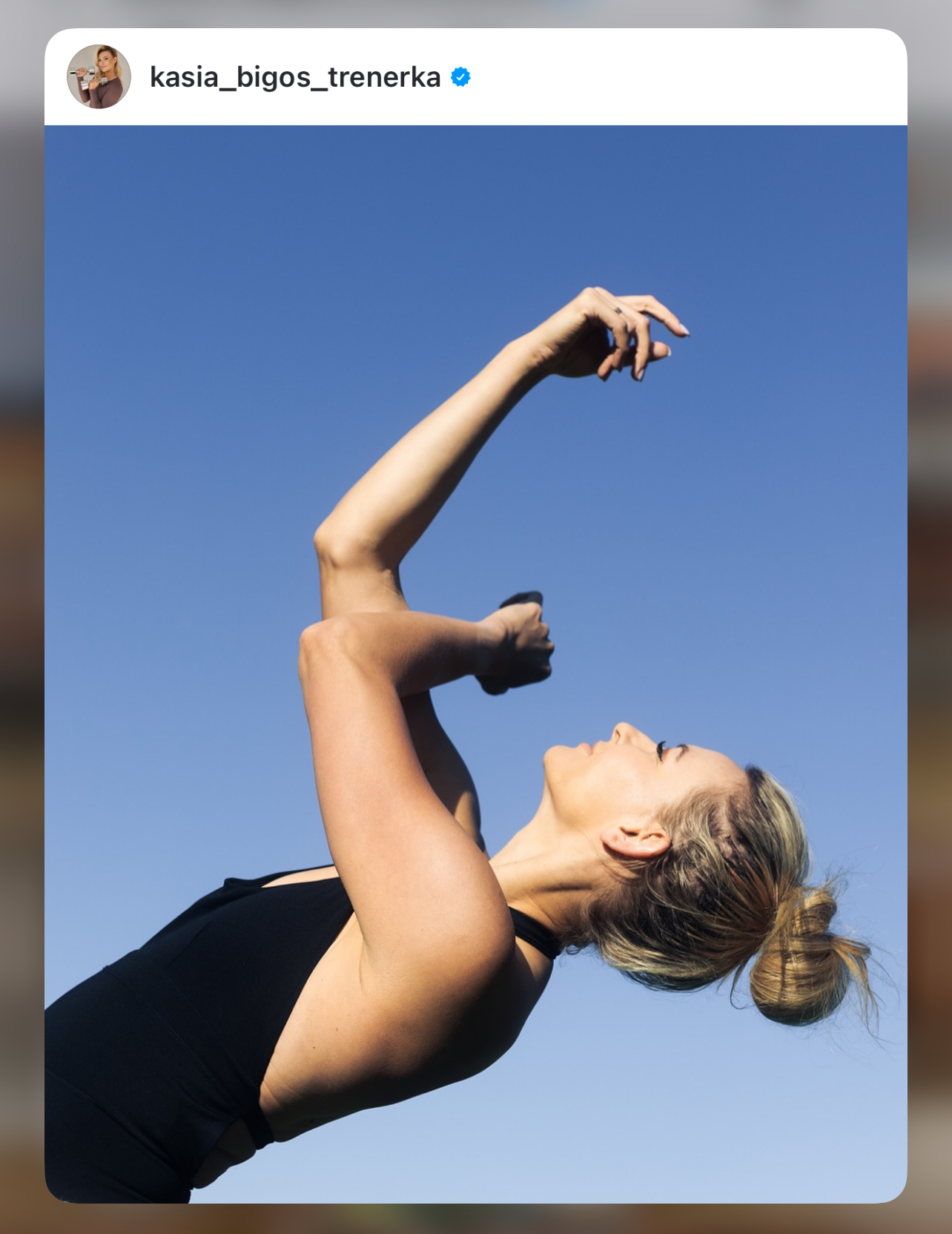 Kasia pokazuje swoje wartości nie tylko tym, co pisze, ale i obrazem. Jej zdjęcia są pełne życia, autentyczne, często pokazujące ciało w ruchu – bez pozowania i filtrów. Fotografie opowiadają o akceptacji, ruchu, sile – dokładnie tym, czym jest jej marka.